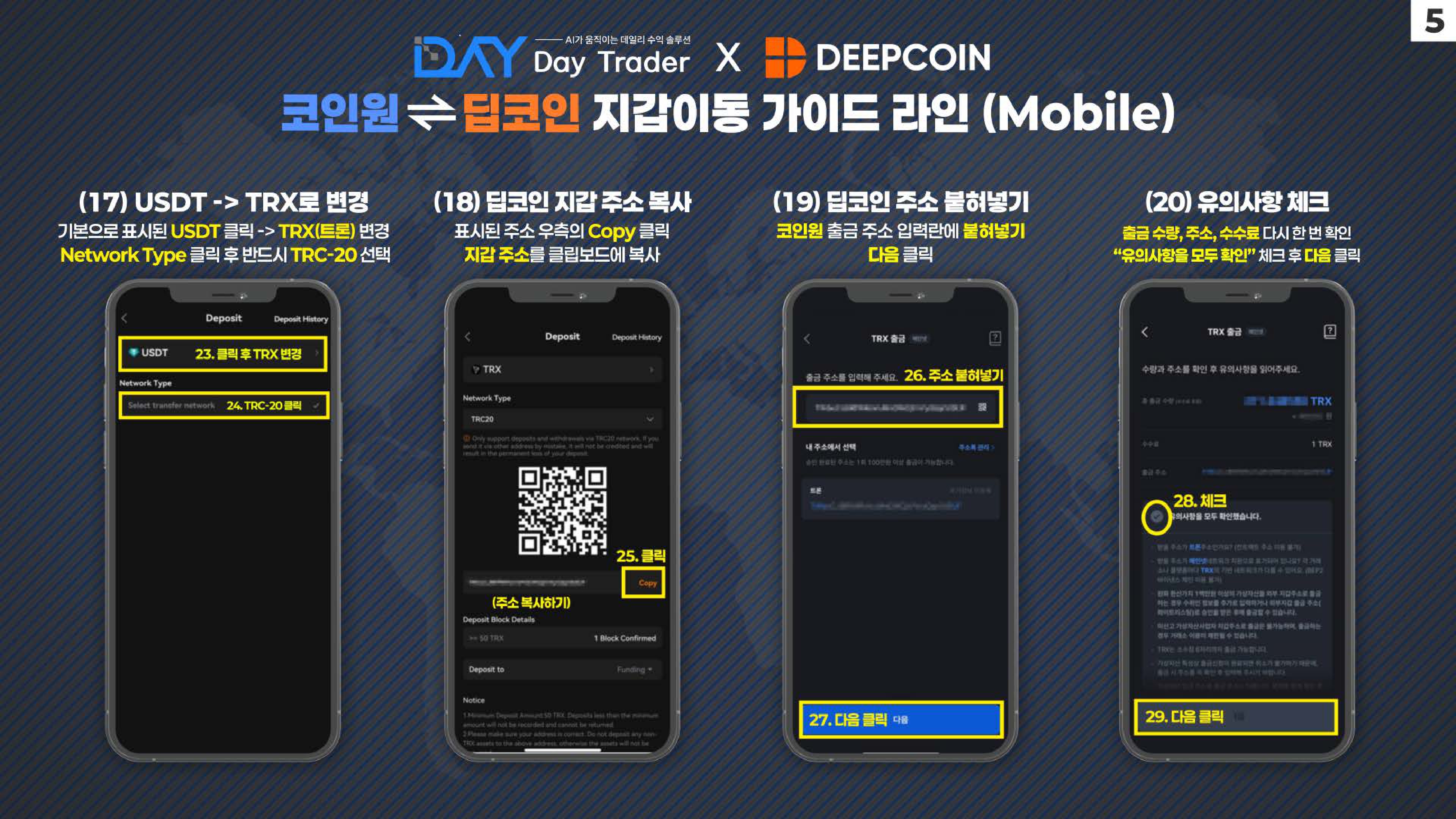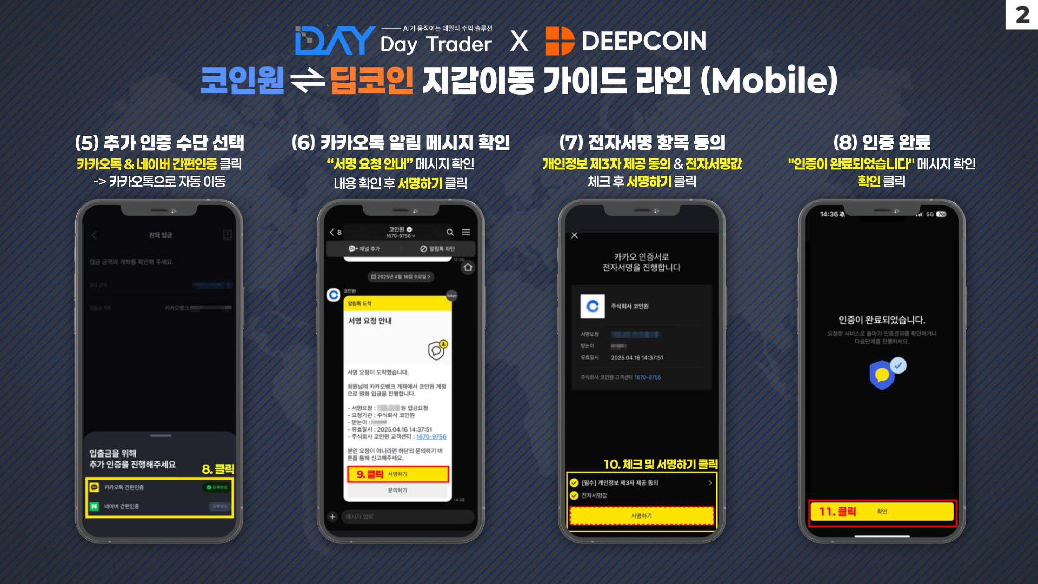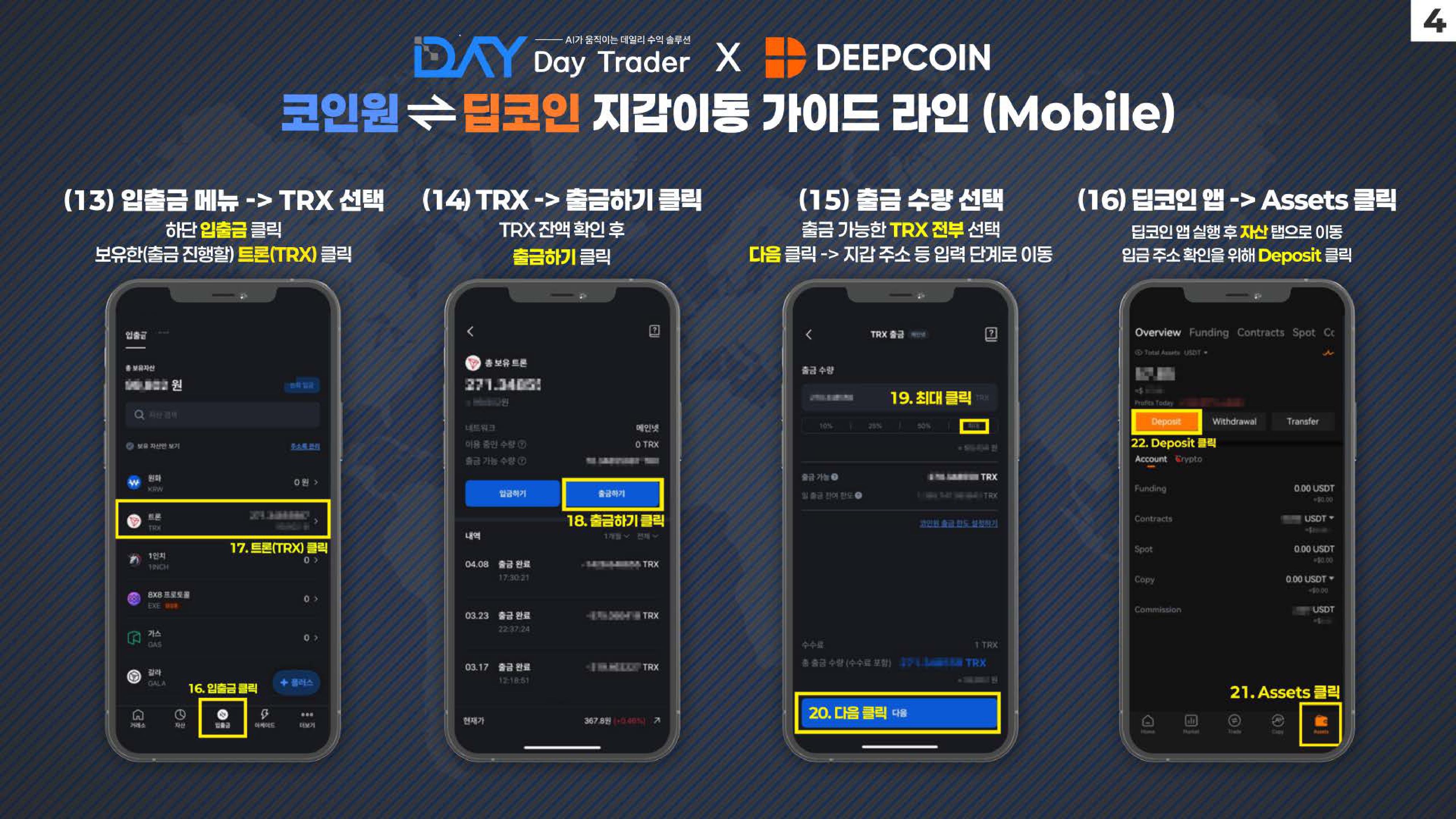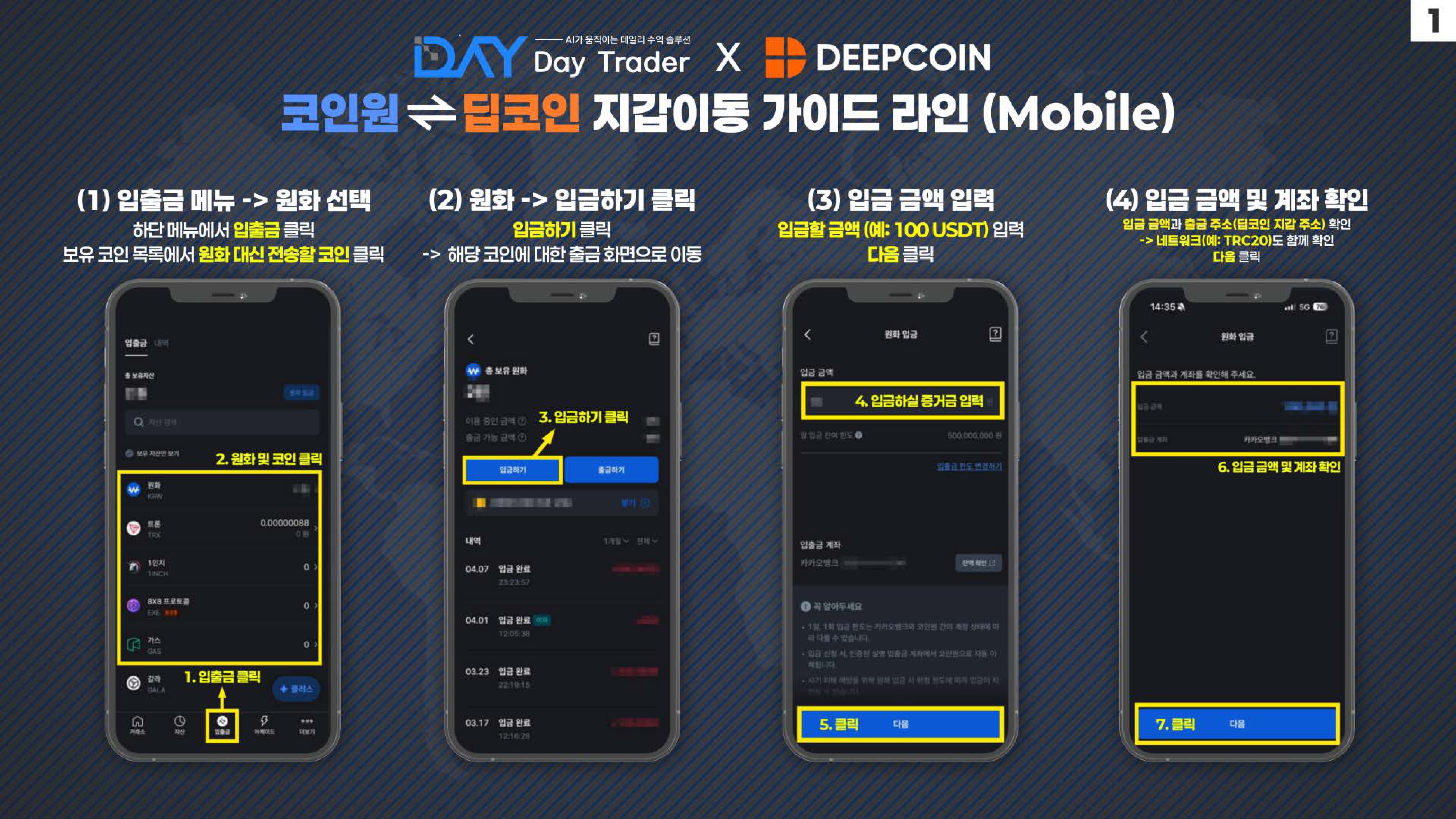 코인원 딥코인 지갑이동 가이드 라인 (Mobile)