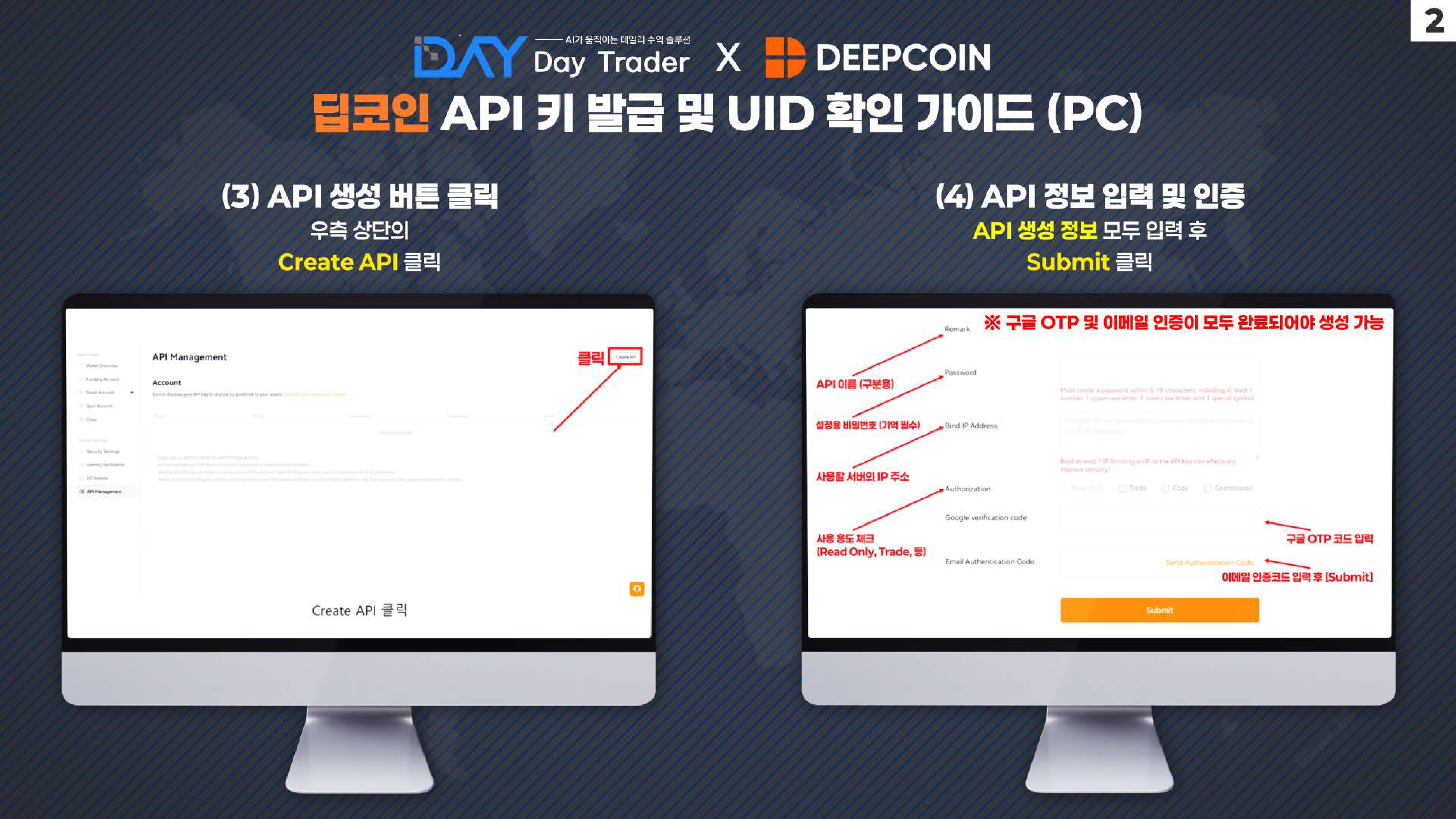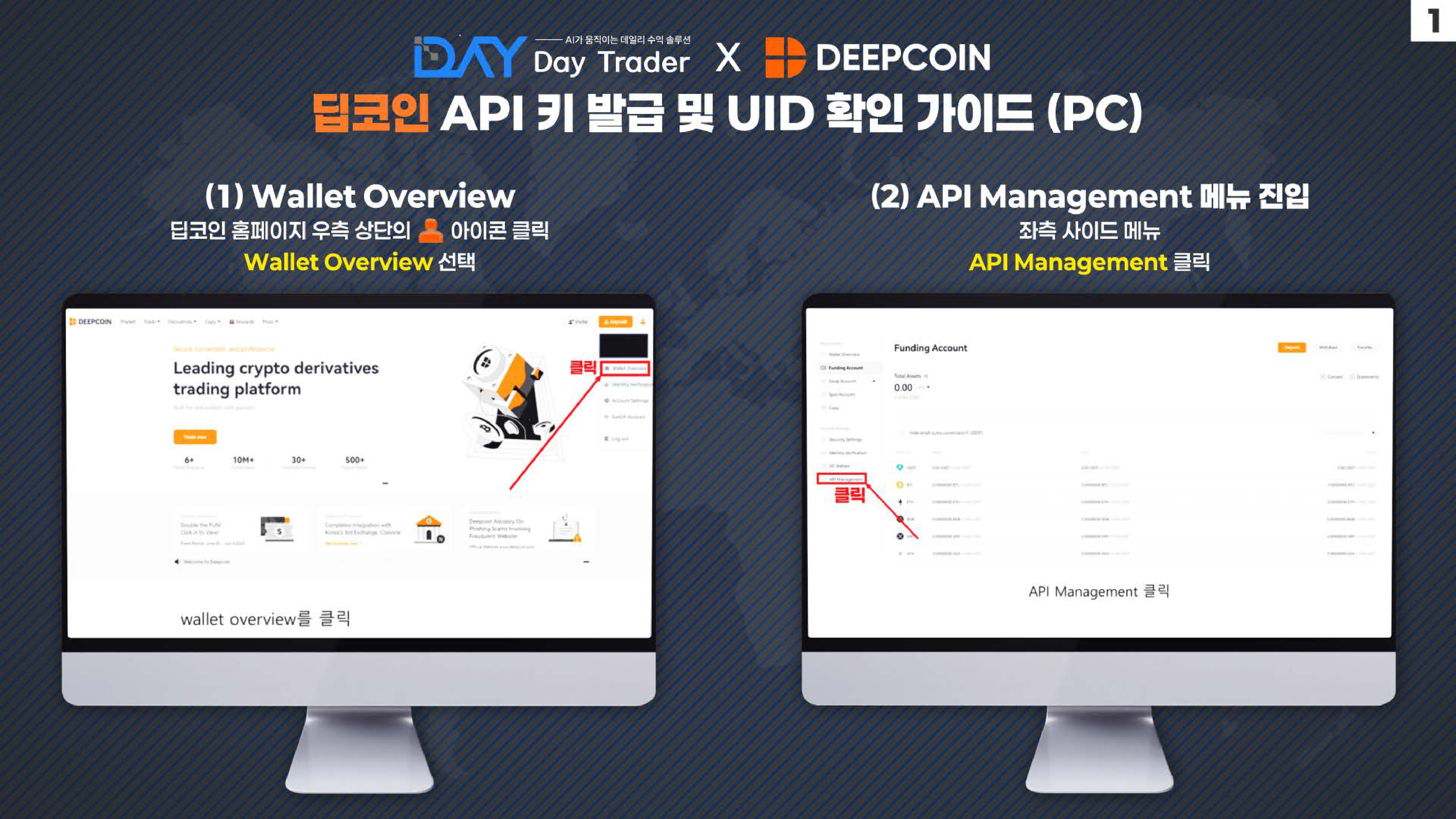 딥코인 API키 발급 및 UID 확인 가이드 (PC)
